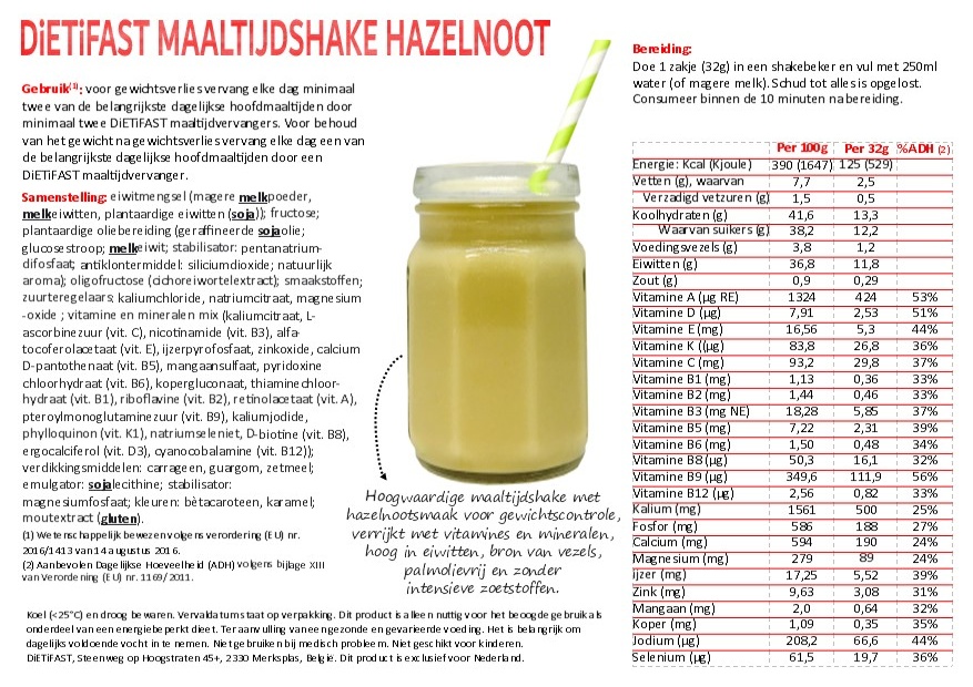 Samenstelling maaltijd vervangende shakes chocolade hazelnoot