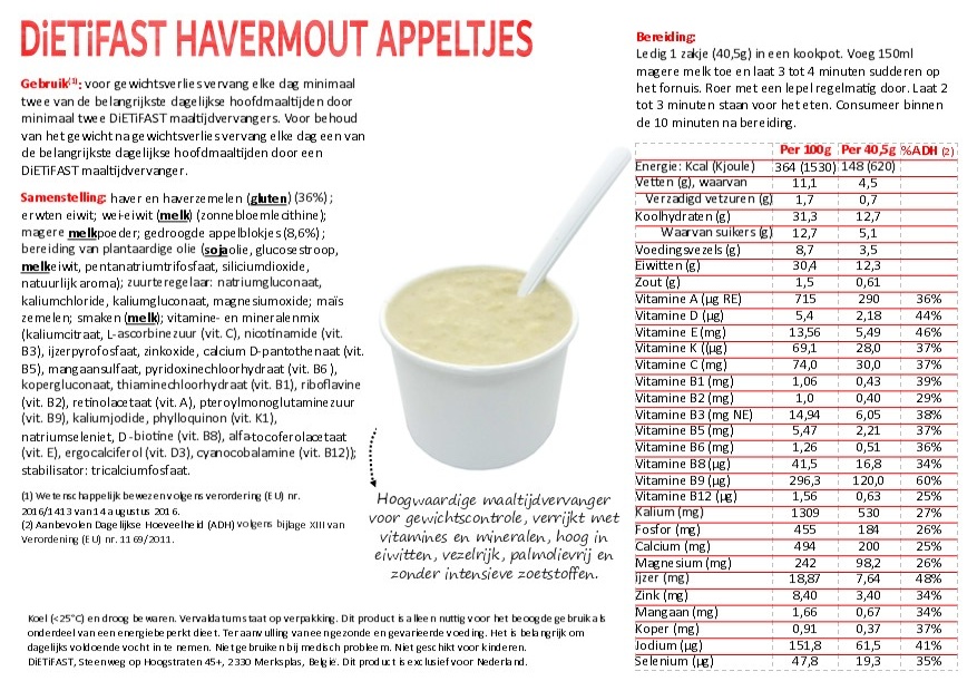 Samenstelling maaltijdvervanger havermout appeltjes